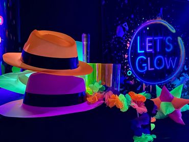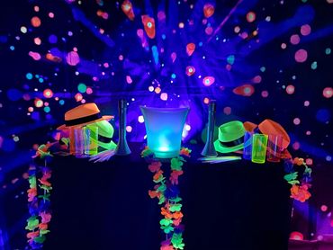 Ask your party guests to wear neon (fluorescent) or white coloured clothing - they'll become part of the decor.