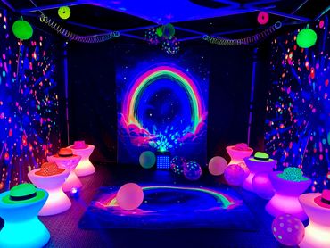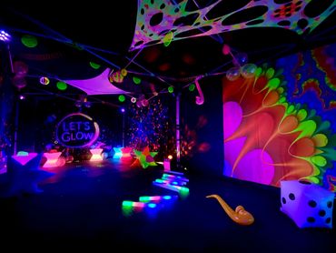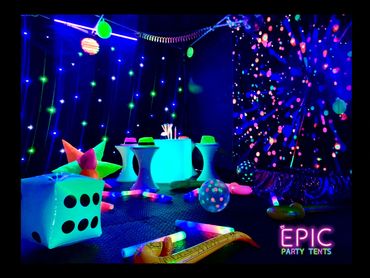 We can set-up our kids UV glow party tent in your garden, on your driveway, or in a local community centre, or church hall (recommended in late autumn and winter).
