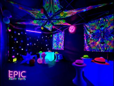 We can set-up our rave cave party tent in your garden, on your driveway, or as part of a larger celebration, or event - a party within a party!