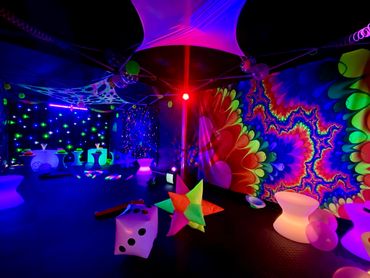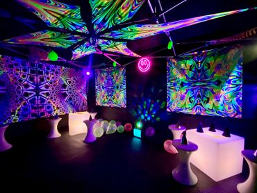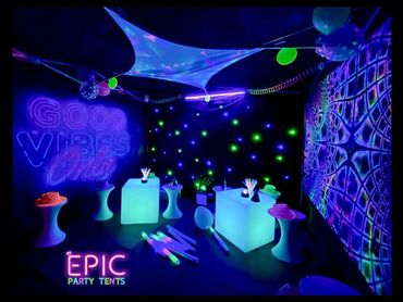 Ask your party guests to wear neon (fluorescent) or white coloured clothing - they'll become part of the decor.