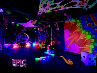Hiring UV glow party tents, silent disco equipment, and silent disco cinema tents to the public, schools and business.
